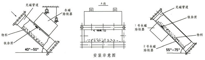 RCYAR1、RCYA2系(xi)列管道(dao)式(shi)永(yong)磁(ci)(ci)除(chu)鐵器(qi)包(bao)括無磁(ci)(ci)管道(dao)和永(yong)磁(ci)(ci)鐵兩部分,專用于(yu)對封閉管道(dao)內非(fei)磁(ci)(ci)性物料(liao)(liao)除(chu)鐵,永(yong)磁(ci)(ci)除(chu)鐵器(qi)內部采用高性能(neng)稀(xi)土強磁(ci)(ci)材料(liao)(liao)組成復合(he)磁(ci)(ci)系(xi)。具有體積小(xiao)、磁(ci)(ci)力大(da)、重量輕、除(chu)鐵干凈、方便、無能(neng)耗、使(shi)用壽命長等(deng)特點。適合(he)于(yu)無輸送皮(pi)帶,只能(neng)提供下(xia)料(liao)(liao)溜槽的(de)場合(he)。當散狀物料(liao)(liao)經(jing)過管道(dao)式(shi)永(yong)磁(ci)(ci)除(chu)鐵器(qi)時(shi),鐵雜物被高場強的(de)永(yong)磁(ci)(ci)鐵所吸附(fu),清(qing)(qing)除(chu)鐵雜質(zhi)時(shi),打(da)開管道(dao)專用門將雜質(zhi)取出(chu)。該(gai)設備適用于(yu)含(han)鐵量較(jiao)少的(de)場合(he),含(han)鐵較(jiao)多的(de)場合(he)應選(xuan)用自卸(xie)式(shi)除(chu)鐵器(qi)或(huo)RCYG系(xi)列精細除(chu)鐵器(qi)。主(zhu)要應用于(yu)水泥、化(hua)工、煤炭、塑料(liao)(liao)、耐火材料(liao)(liao)、建材等(deng)行業的(de)下(xia)料(liao)(liao)管道(dao)中清(qing)(qing)除(chu)雜質(zhi)。